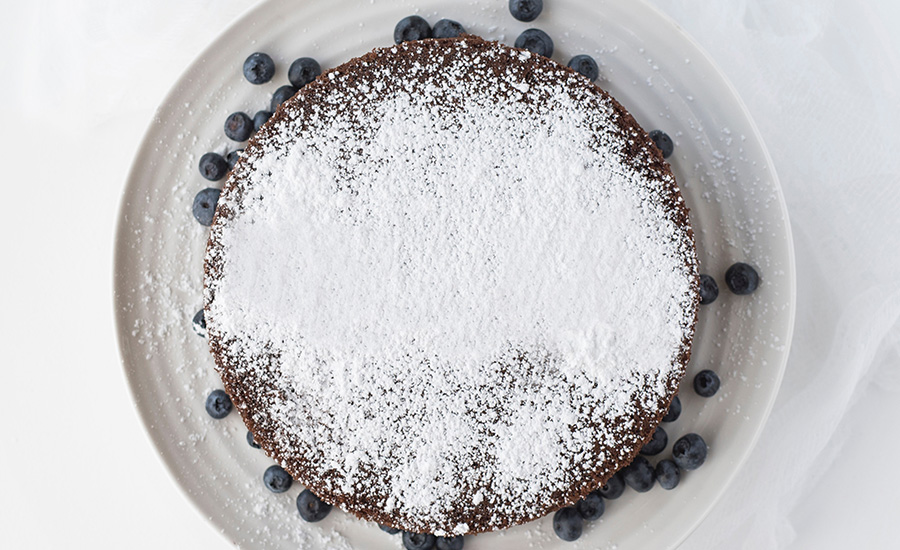 Chocolate lava cake with mango mascarpone